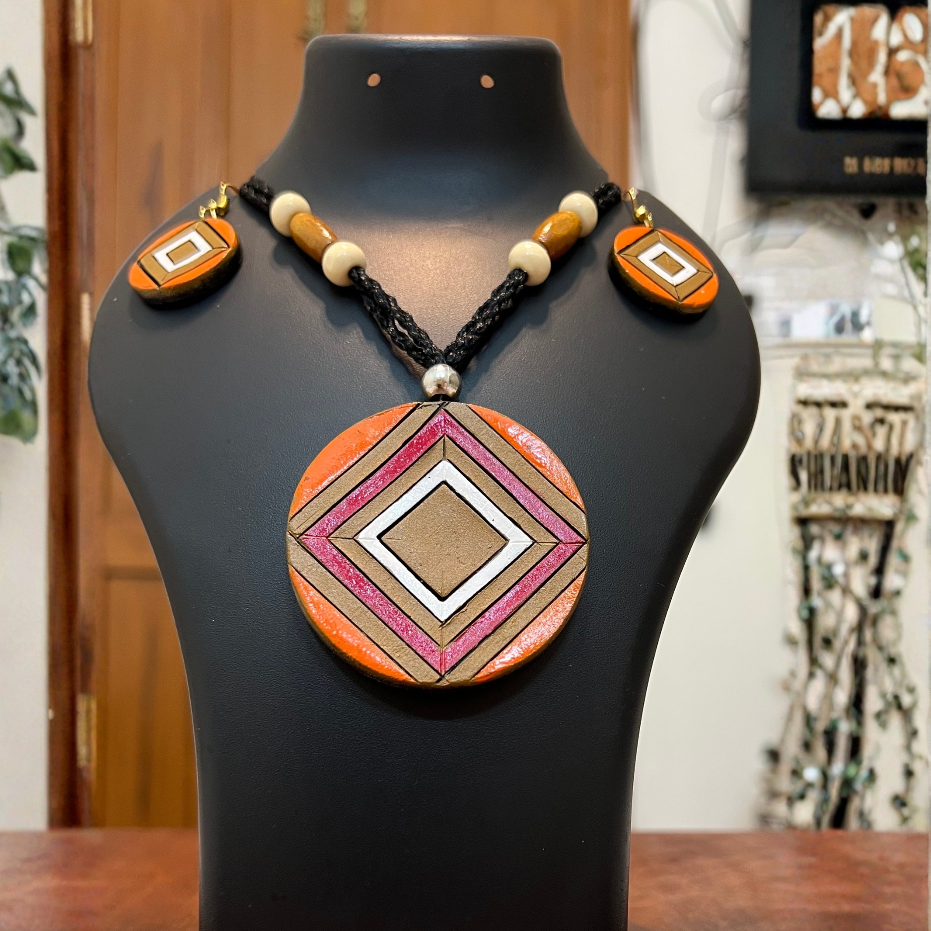 Be the first to review “Terracotta Art Deco Pendant Set”